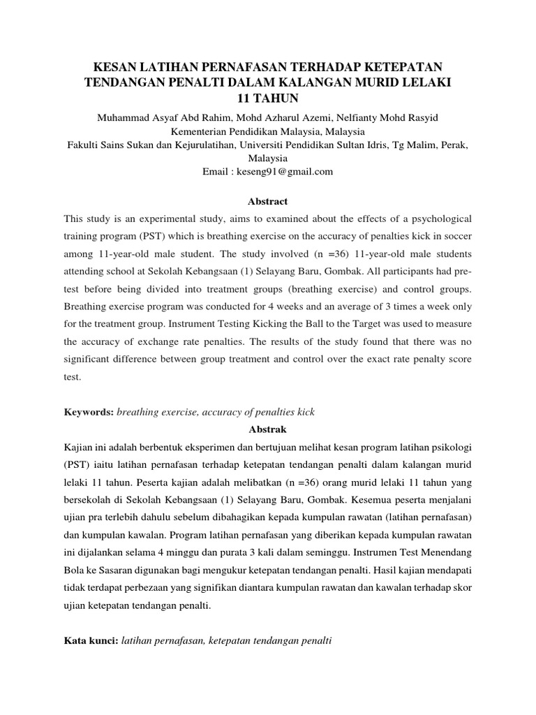 Kesan Latihan Pernafasan Kepada Ketepatan Tendangan Penalti Pdf